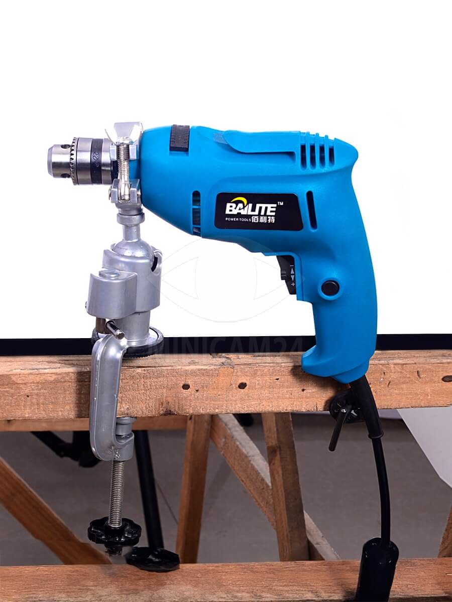Одной из ключевых особенностей модели является возможность установки электрической дрели на специальную подставку с поворотной головкой. Это позволяет изменять угол наклона инструмента на 360 градусов, что значительно расширяет возможности работы и обеспечивает максимальное удобство при сверлении или других видах обработки материалов.