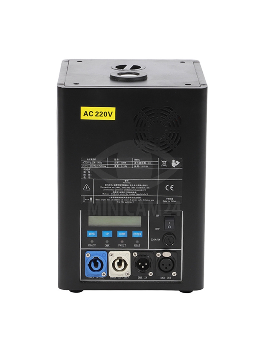 Корпус генератора холодных искр выполнен из ударопрочной стали высокой плотности, что гарантирует долговечность и устойчивость к механическим воздействиям. Мощность нагрева до 500 Вт обеспечивает стабильную работу даже при низких температурах — до -30°C. Устройство имеет 10 уровней регулировки высоты фонтана через DMX-контроллер, а также функции автоочистки, предварительного нагрева и защиты от перегрева.