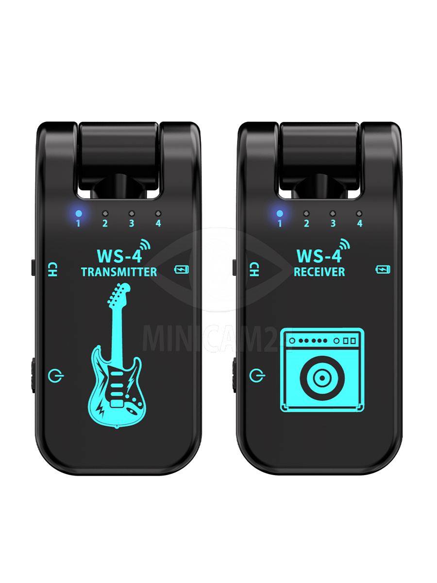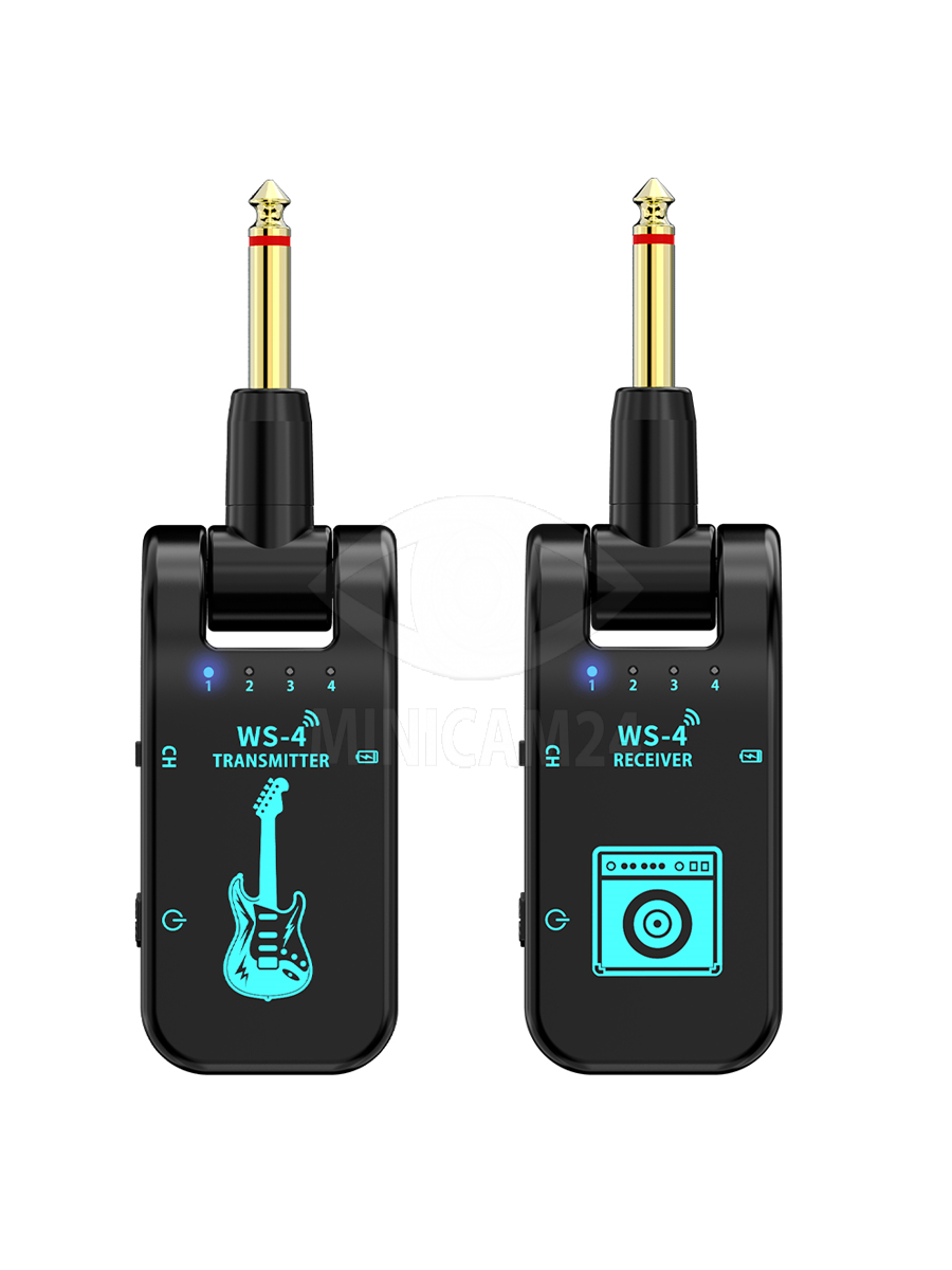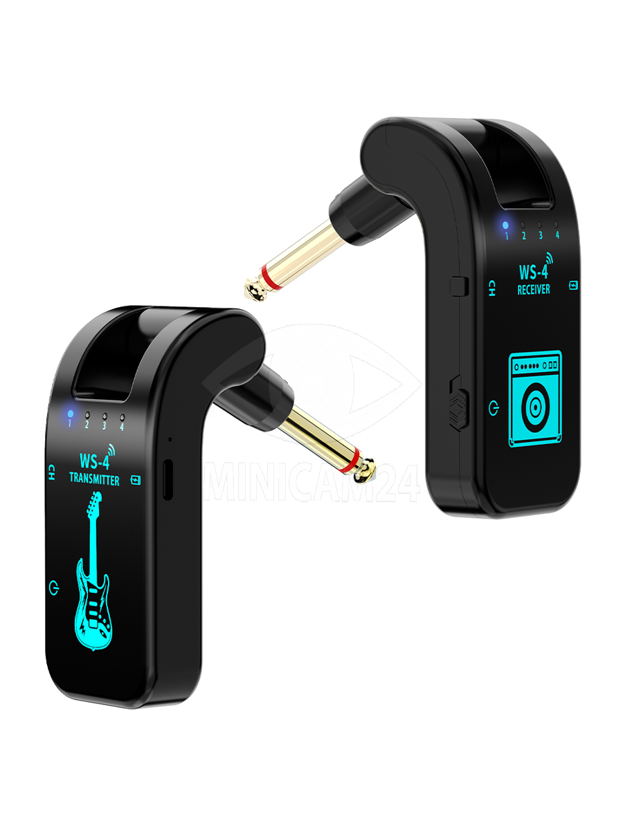 Беспроводная гитарная система (приемник/передатчик) WS-1 Black bluetooth обеспечивает высокое качество передачи звука и простоту настройки. Цифровая гитарная система для электрогитары на аккумуляторе имеет защиту от помех, поэтому качество звучания останется на высочайшем уровне. Аккумуляторный перезаряжамый блютуз передатчик звука обеспечивает передачу в радиусе до 30 метров на открытой местности и до 15 внутри помещений без использования проводов и дополнительных систем. Приемник может использоваться совместно с 4 устройствами на разных каналах, а передатчик может отправлять сигнал на несколько приемников. Аудиопередатчик имеет небольшие размеры, поэтому его удобно брать с собой. На корпусе расположена управляющая панель и порт для подключения адаптера питания.